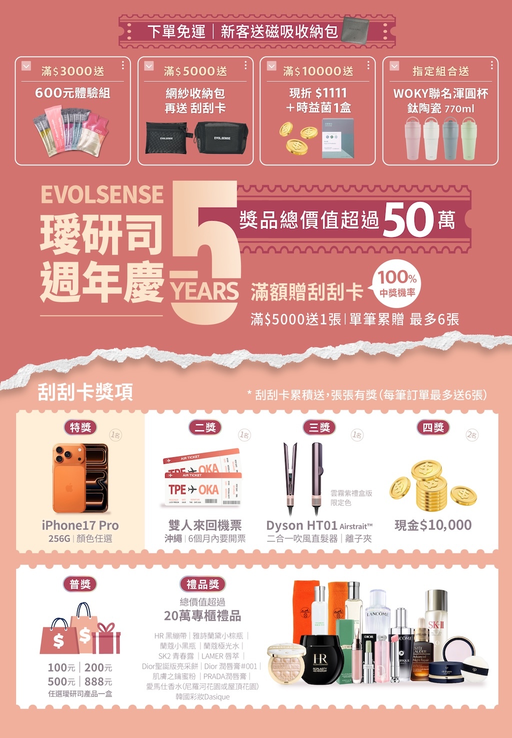 至2025-12-01T04:00:00.000+00:00截止 全店,【5週年慶】$5,000送『好禮刮刮卡』(每筆訂單最多6張)